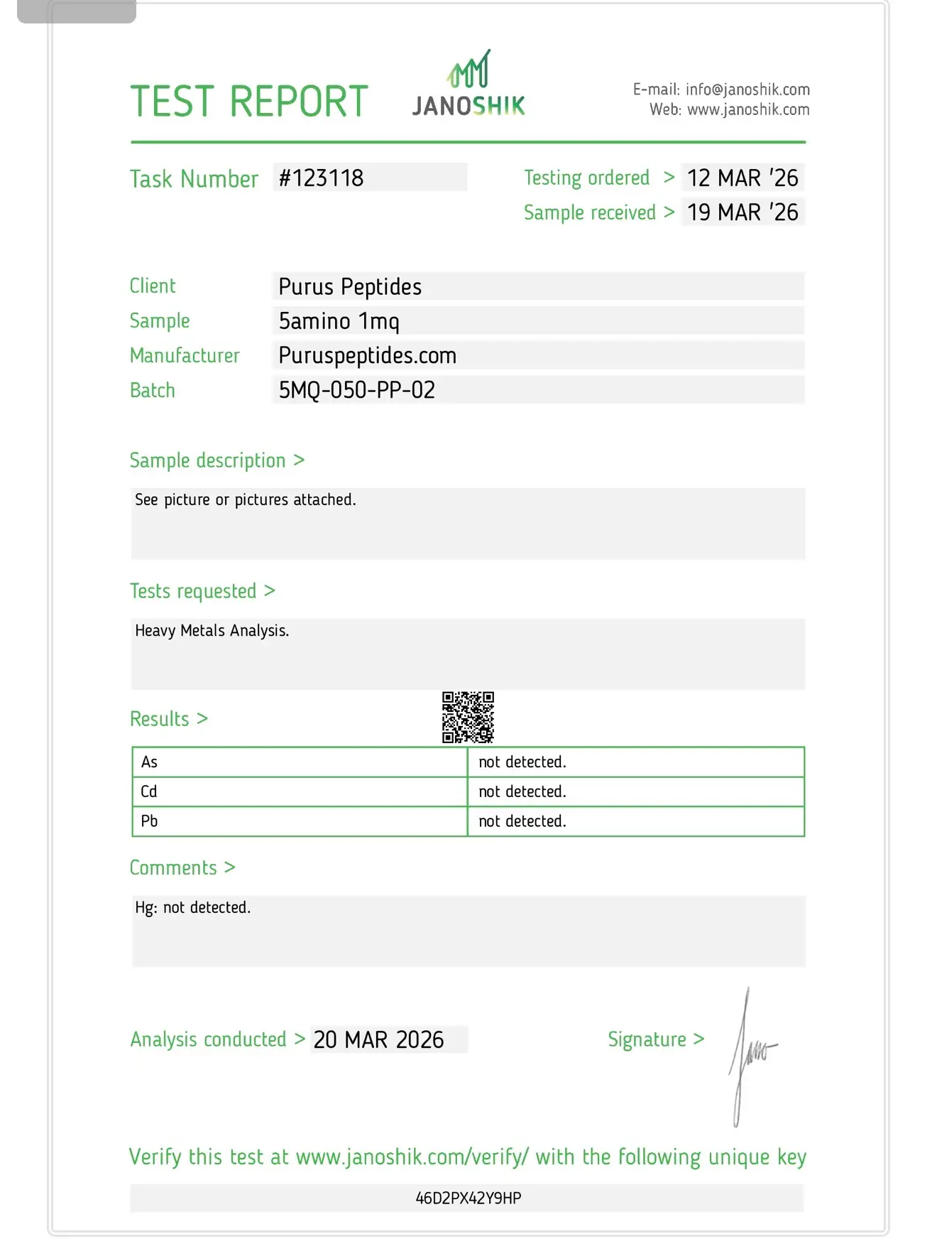 All items available on this website are intended exclusively for research and development purposes, including laboratory and analytical applications, and are not meant for human or animal consumption in any form. The products are not designed to diagnose, treat, cure, or prevent any medical conditions, and their associated claims have not been reviewed or approved by the U.S. Food and Drug Administration. Purus Peptides operates solely as a supplier of research chemicals and is neither a compounding pharmacy nor an outsourcing facility as defined by sections 503A or 503B of the Federal Food, Drug, and Cosmetic Act